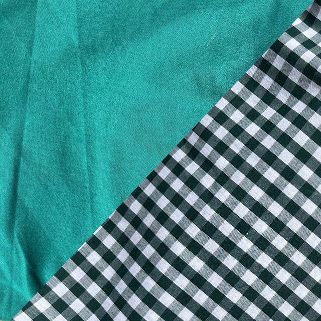 Crop-top reversible 2 en 1 en tissu upcyclé.