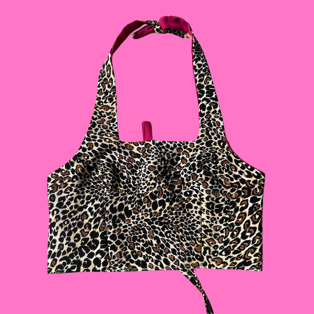 Crop top collection marylin reversible 2-en-1 en tissu upcyclé.